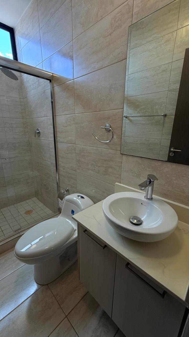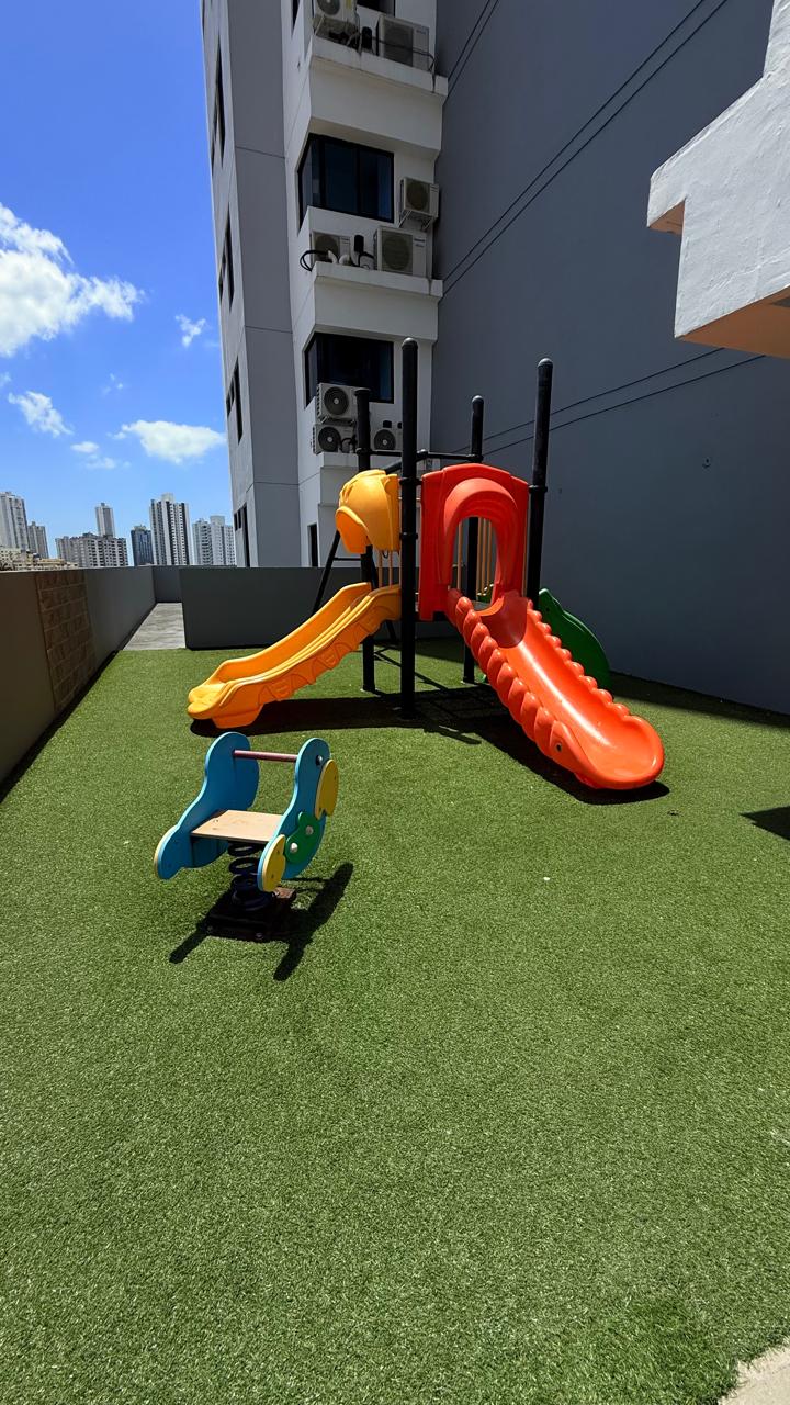 Céntrico y moderno apartamento de 2 recámaras, 2 baños, sala – comedor, cocina, área de lavandería, aires acondicionados en todo el apartamento, balcón con vista panorámica, depósito, 2 estacionamientos. El edificio cuenta con una agradable área social diseñada para el disfrute de sus residentes, que incluye piscina para adultos y niños, salón de eventos o sala multiusos, área de juegos infantiles y espacios comunes para compartir en familia. Además, dispone de lobby de acceso, control de acceso y estacionamientos para visitas, brindando comodidad y tranquilidad a sus residentes. Su ubicación estratégica permite rápida conexión con importantes vías como la Vía España y la Avenida Santa Elena, además de encontrarse cerca de supermercados, comercios, escuelas y restaurantes. El edificio ofrece seguridad y agradables amenidades para el disfrute de sus residentes, lo que lo convierte en una excelente opción para vivir o invertir en una zona con alta demanda residencial.